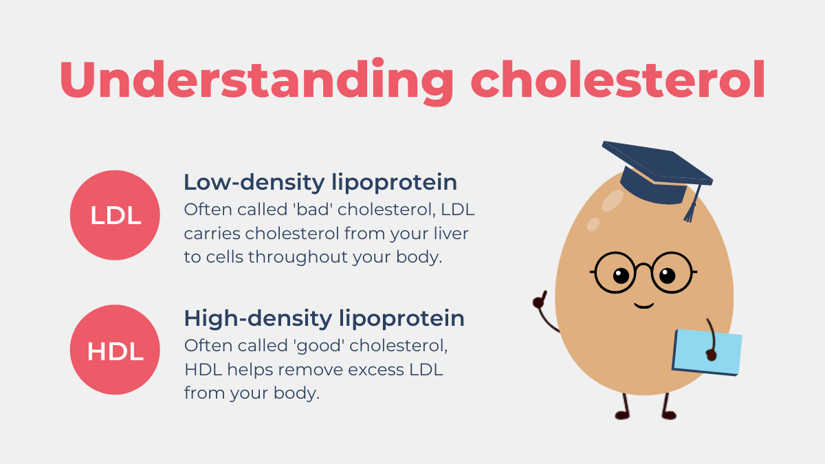 Research shows that the cholesterol that comes from the foods you eat has a minimal impact on LDL (‘bad’) cholesterol levels6. This is because the body naturally regulates the amount of cholesterol that circulates in the blood, so when you eat more cholesterol from food, your body produces less cholesterol to compensate. In fact, HDL (‘good’) cholesterol helps to protect you from heart disease by removing excess cholesterol from your arteries and carrying it back to the liver7.