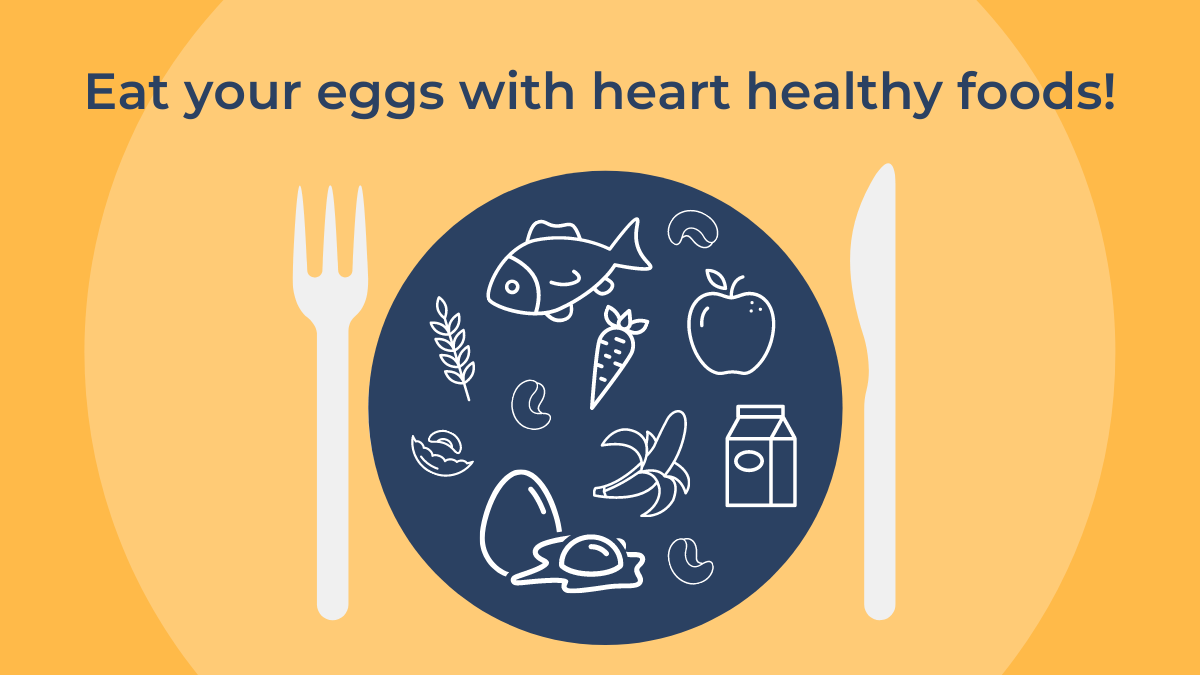 Eggs should be eaten as part of a varied diet alongside foods that are good for heart health, such as fish, fruit, vegetables, whole grains, dairy foods, nuts and legumes1,18.