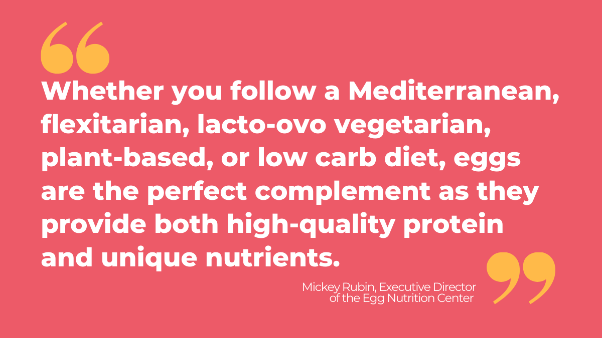 “Whether you follow a Mediterranean, flexitarian, lacto-ovo vegetarian, plant-based, or low carb diet, eggs are the perfect complement as they provide both high-quality protein and unique nutrients,” Dr Rubin summarises.